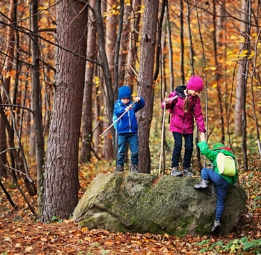 Gozdni vrtec omogoča bogat jezikovni razvoj skozi neposredne izkušnje z naravo, kjer se jezik povezuje s konkretnimi spoznanji in čustvenimi doživetji.